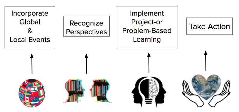 Within the four domains there are 24 Indicators, which are K-12 interdisciplinary to develop knowledge & understanding of global issues.